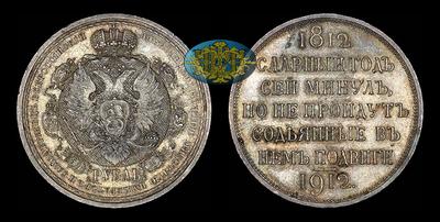 Чеканена в честь 100-летия победы в Отечественной войне 1812 года.