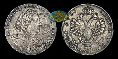 Рубль 1710 года, Н Кадашевский монетный двор. Портрет образца 1707 года работы Г. Гаупта. "Н" в обрезе рукава.