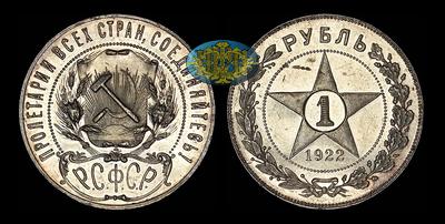 Рубль 1922 года, АГ Запятая после слова "СТРАН" прямоугольной формы.