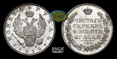 Аверс: Орел 1812-1818 годов, большой. Центральная корона больше. Скипетр длиннее. Хвост орла короче.