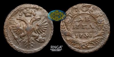 Денга 1731 года. Перечекан из Копейки 1704-1718 годов