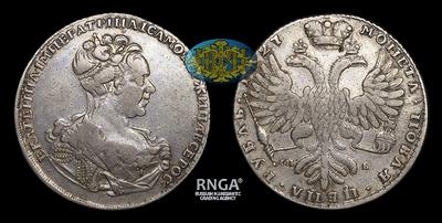 Крайне интересная разновидность рубля 1727 года. Портрет Императрицы значительно отличается от всех известных вариантов ее изображения. Благодаря сильно уменьшенному размеру и высочайшей проработке малых и мельчайших деталей выглядит более изящным, полностью передавая образ Екатерины. На сегодняшний день известны и описаны четыре рублевика 1727 года с подобным типом портрета, отличающиеся между собой, в основном, по различиям на реверсе. Все они очень редки и особо выделены во всех каталогах и изданиях по русской нумизматике.