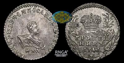 Аверс: Голова больше. “М.М.Д.”. Двоеточие в конце круговой надписи.