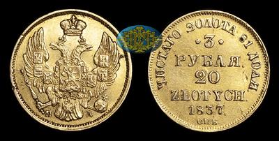 3 Рубля - 20 Злотых 1837 года, СПБ ПД