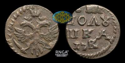 Аверс: Орел 1719-1721 годов, малый. Центральная корона т.н. «царская», большая. Малые короны, т.н. «императорские», малые. Хвост орла из трех перьев.