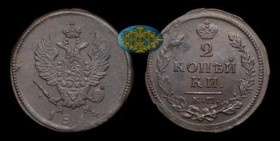 2 Копейки 1814 года, КМ АМ. Тип 1812-1825 годов. Сузунский монетный двор