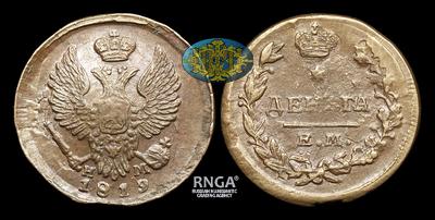 Деньга 1819 года, ЕМ НМ. Тип 1811, 1813, 1815, 1818-1819, 1822, 1825 годов. Екатеринбургский монетный двор