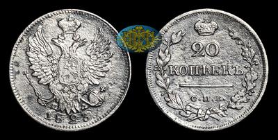20 Копеек 1823 года, СПБ ПД. Санкт-Петербургский монетный двор