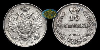 10 Копеек 1813 года, СПБ ПС. Тип 1813-1825 годов. Санкт-Петербургский монетный