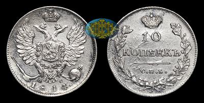 10 Копеек 1814 года, СПБ ПС. Тип 1813-1825 годов. Санкт-Петербургский монетный