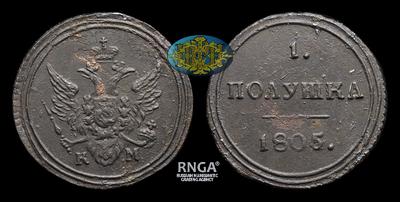 Полушка 1805 года, КМ. Тип 1804-1805, 1807 годов. Сузунский монетный двор
