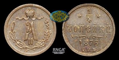 1/4 Копейки 1876 года, СПБ. Тип 1867-1871, 1876-1881 годов. Санкт-Петербургский монетный двор
