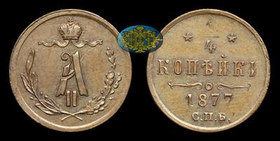 1/4 Копейки 1877 года, СПБ. Тип 1867-1871, 1876-1881 годов. Санкт-Петербургский монетный двор