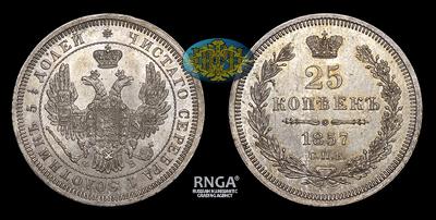 25 Копеек 1857 года, СПБ ФБ. Тип 1855-1858 годов. Санкт-Петербургский монетный двор