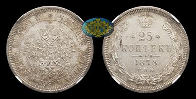 25 Копеек 1878 года, СПБ НФ. Тип 1859-1881 годов. Санкт-Петербургский монетный двор
