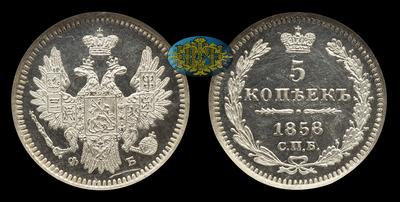 5 Копеек 1858 года, СПБ ФБ. Тип 1855-1858 годов. Санкт-Петербургский монетный двор