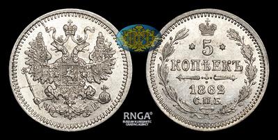 5 Копеек 1862 года, СПБ МИ. Тип 1860-1866 годов. Санкт-Петербургский монетный двор