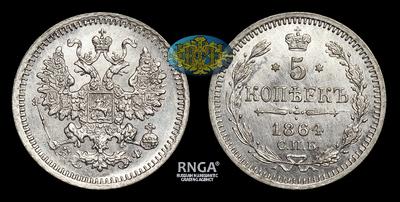 5 Копеек 1864 года, СПБ НФ. Тип 1860-1866 годов. Санкт-Петербургский монетный двор