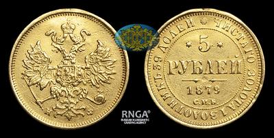 5 Рублей 1878 года, СПБ НФ. Тип 1859-1881 годов. Санкт-Петербургский монетный двор