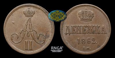 Денежка 1862 года, ВМ. Тип 1861-1863 годов. Варшавский монетный двор