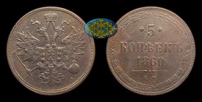 5 Копеек 1860 года, ЕМ. Тип 1858-1867 годов. Екатеринбургский монетный двор