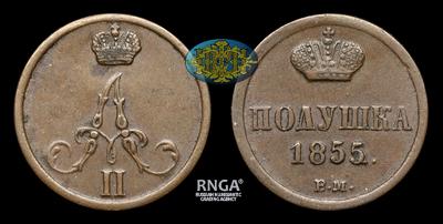 Полушка 1855 года, ВМ. Тип 1855, 1860 годов. Варшавский монетный двор