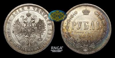 Рубль 1869 года, СПБ HI. Тип 1859-1881 годов. Санкт-Петербургский монетный двор