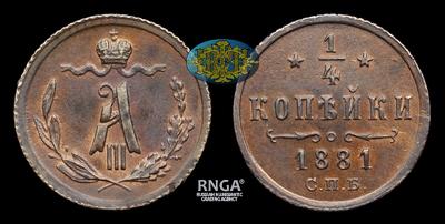 1/4 Копейки 1881 года, СПБ. Тип 1881-1893 годов. Санкт-Петербургский монетный двор