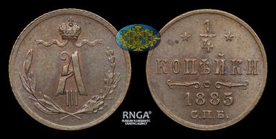 1/4 Копейки 1885 года, СПБ. Тип 1881-1893 годов. Санкт-Петербургский монетный двор