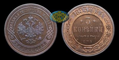 3 Копейки 1893 года, СПБ. Тип 1881-1884, 1891-1894 годов. Санкт-Петербургский монетный двор