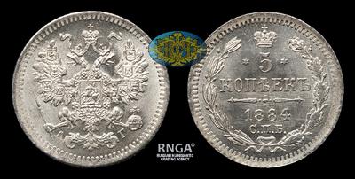5 Копеек 1884 года, СПБ АГ. Тип 1881-1893 годов. Санкт-Петербургский монетный двор