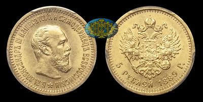 5 Рублей 1889 года, АГ. Тип 1886-1894 годов. Санкт-Петербургский монетный двор