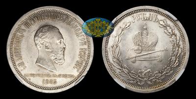 Рубль 1883 года, ЛШ. "В память Коронации Императора Александра III". Санкт-Петербургский монетный двор
