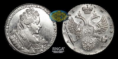 Центральная корона средняя. Ости между перьев на крыльях орла. Скипетр с трилистником. Крест на державе украшенный.