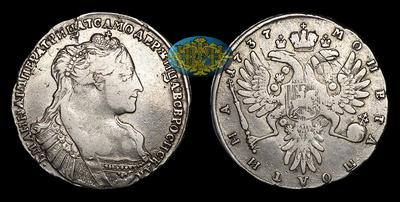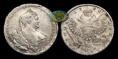 Аверс: Тип 1735-1737 годов, т.н. «Лошадиный профиль». Кулон с тремя жемчужинами на груди. Точка в начале и ничего в конце круговой надписи. «Ц» в «САМОДЕРЖИЦА» с длинным хвостиком.