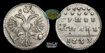 Гривенник 1733 года. Тип 1731-1735 годов. Кадашевский монетный двор