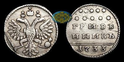Гривенник 1733 года. Тип 1731-1735 годов. Кадашевский монетный двор