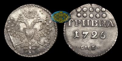 Гривна 1726 года, СПБ. Тип 1726-1727 годов. Санкт-Петербургский монетный двор