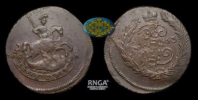 2 Копейки 1763 года, СПМ. Тип 1763-1767, 1788 годов. Перечекан из 4 Копеек 1761-1762 годов. Санкт-Петербургский монетный двор