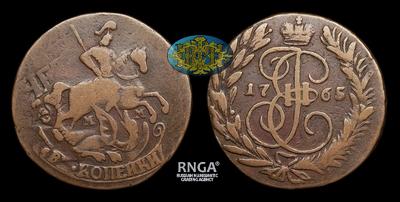 2 Копейки 1765 года, ММ. Тип 1763-1767 годов. Перечекан из 4 Копеек 1761-1762 годов. Красный монетный двор