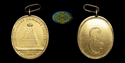 По имеющейся в нашем распоряжении информации, данный экзепляр является единственным, находящимся в частных руках. В каталоге В.В.Биткина (В.В.Биткин “Сводный каталог медалей России” Киев, 2008 год.) приводится изображение подобного экземпляра, также имеющего золотую оправу с кольцом для ношения, происходящего из коллекции П.В.Зубова (Российская Империя), сегодня находящегося в нумизматическом собрании Государственного Исторического музея (г. Москва). Еще один экземпляр из коллекции К.Шроля (Российская Империя) хранится в собрании отдела нумизматики Государственного Эрмитажа (г. СанктПетербург).