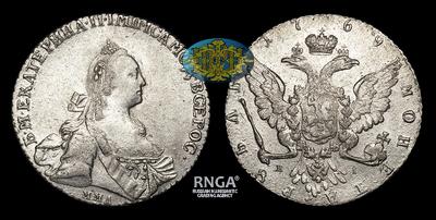 Рубль 1769 года, ММД ЕI. Тип 1767-1770, 1775 годов. Красный монетный двор