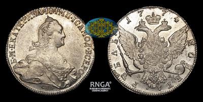Рубль 1774 года, СПБ ТИ ФЛ. Тип 1773-1776 годов. Санкт-Петербургский монетный двор