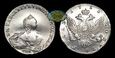 Рубль 1755 года, СПБ BS ЯI. Тип 1754-1757 годов. Портрет Б.Скотта. Санкт-Петербургский монетный двор