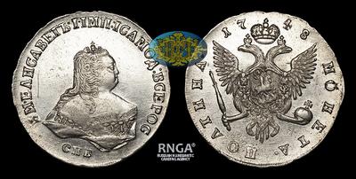 Полтина 1748 года, СПБ. Тип 1743-1754 годов. Санкт-Петербургский монетный двор