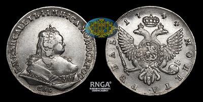 Рубль 1744 года, СПБ. Тип 1741-1754 годов. Санкт-Петербургский монетный двор
