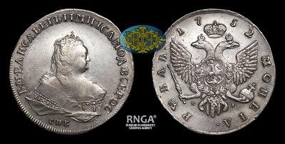 Рубль 1752 года, СПБ ЯI. Тип 1741-1754 годов. Санкт-Петербургский монетный двор