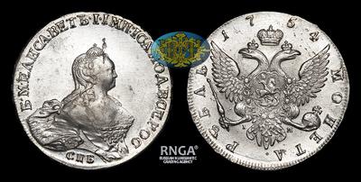 Рубль 1754 года, СПБ BS IМ. Тип 1754-1757 годов. Портрет Б.Скотта. Санкт-Петербургский монетный двор