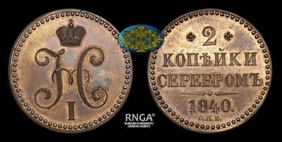 2 Копейки 1840 года, СПБ. Пробные / Новодел. Тип 1840 года. Санкт- Петербургский монетный двор