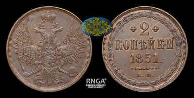 2 Копейки 1851 года, ЕМ. Тип 1849-1855 годов. Екатеринбургский монетный двор